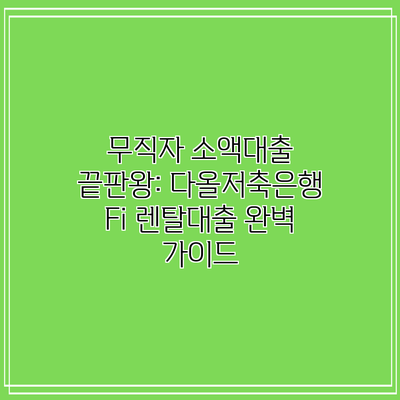 무직자 소액대출 끝판왕: 다올저축은행 Fi 렌탈대출 완벽 가이드
