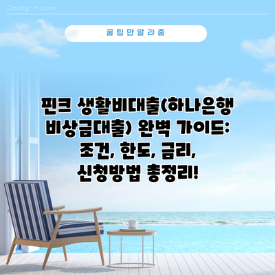 핀크 생활비대출(하나은행 비상금대출) 완벽 가이드: 조건, 한도, 금리, 신청방법 총정리!