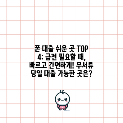 폰 대출 쉬운 곳 TOP 4: 급전 필요할 때, 빠르고 간편하게! 무서류 당일 대출 가능한 곳은?