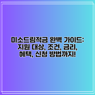 미소드림적금 완벽 가이드: 지원 대상, 조건, 금리, 혜택, 신청 방법까지!
