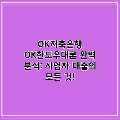 OK저축은행 OK한도우대론 완벽 분석: 사업자 대출의 모든 것!