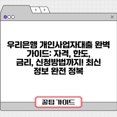 우리은행 개인사업자대출 완벽 가이드: 자격, 한도, 금리, 신청방법까지! 최신 정보 완전 정복