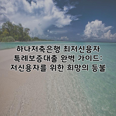 하나저축은행 최저신용자 특례보증대출 완벽 가이드: 저신용자를 위한 희망의 등불