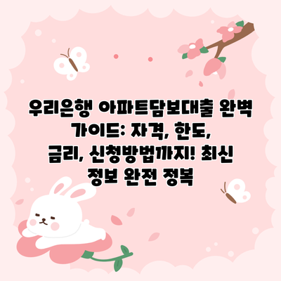 우리은행 아파트담보대출 완벽 가이드: 자격, 한도, 금리, 신청방법까지! 최신 정보 완전 정복