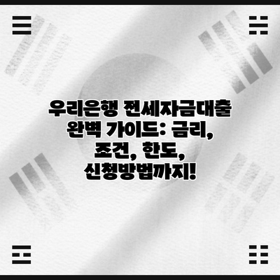 우리은행 전세자금대출 완벽 가이드: 금리, 조건, 한도, 신청방법까지!