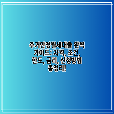 주거안정월세대출 완벽 가이드: 자격, 조건, 한도, 금리, 신청방법 총정리!