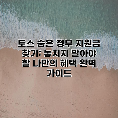 토스 숨은 정부 지원금 찾기: 놓치지 말아야 할 나만의 혜택 완벽 가이드