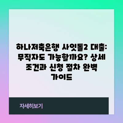 하나저축은행 사잇돌2 대출: 무직자도 가능할까요? 상세 조건과 신청 절차 완벽 가이드