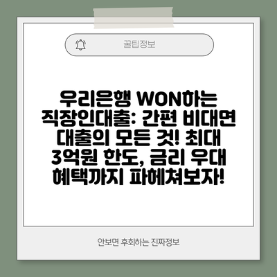 우리은행 WON하는 직장인대출: 간편 비대면 대출의 모든 것! 최대 3억원 한도, 금리 우대 혜택까지 파헤쳐보자!