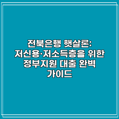 전북은행 햇살론: 저신용·저소득층을 위한 정부지원 대출 완벽 가이드