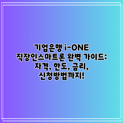 기업은행 i-ONE 직장인스마트론 완벽 가이드: 자격, 한도, 금리, 신청방법까지!