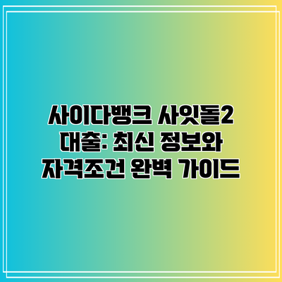 사이다뱅크 사잇돌2 대출: 최신 정보와 자격조건 완벽 가이드