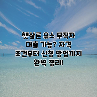 햇살론 유스 무직자 대출 가능? 자격 조건부터 신청 방법까지 완벽 정리!