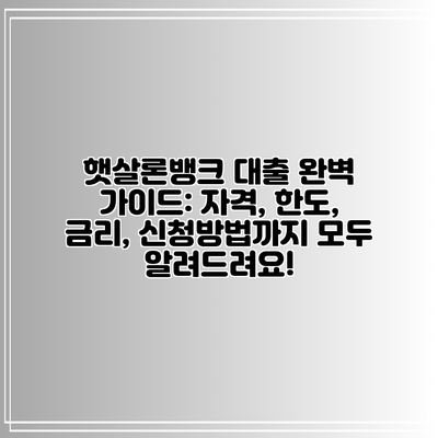 햇살론뱅크 대출 완벽 가이드: 자격, 한도, 금리, 신청방법까지 모두 알려드려요!