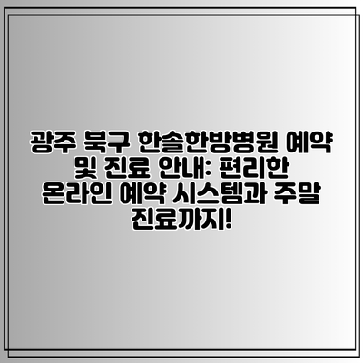 광주 북구 한솔한방병원 예약 및 진료 안내: 편리한 온라인 예약 시스템과 주말 진료까지!