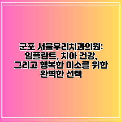 군포 서울우리치과의원: 임플란트, 치아 건강, 그리고 행복한 미소를 위한 완벽한 선택