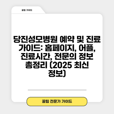당진성모병원 예약 및 진료 가이드: 홈페이지, 어플, 진료시간, 전문의 정보 총정리 (2025 최신 정보)