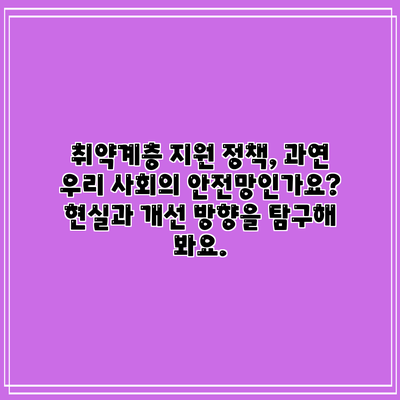 취약계층 지원 정책, 과연 우리 사회의 안전망인가요? 현실과 개선 방향을 탐구해 봐요.