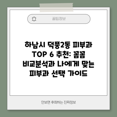 하남시 덕풍2동 피부과 TOP 6 추천: 꼼꼼 비교분석과 나에게 맞는 피부과 선택 가이드
