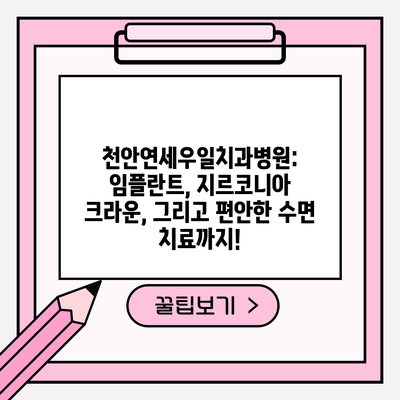천안연세우일치과병원: 임플란트, 지르코니아 크라운, 그리고 편안한 수면 치료까지!